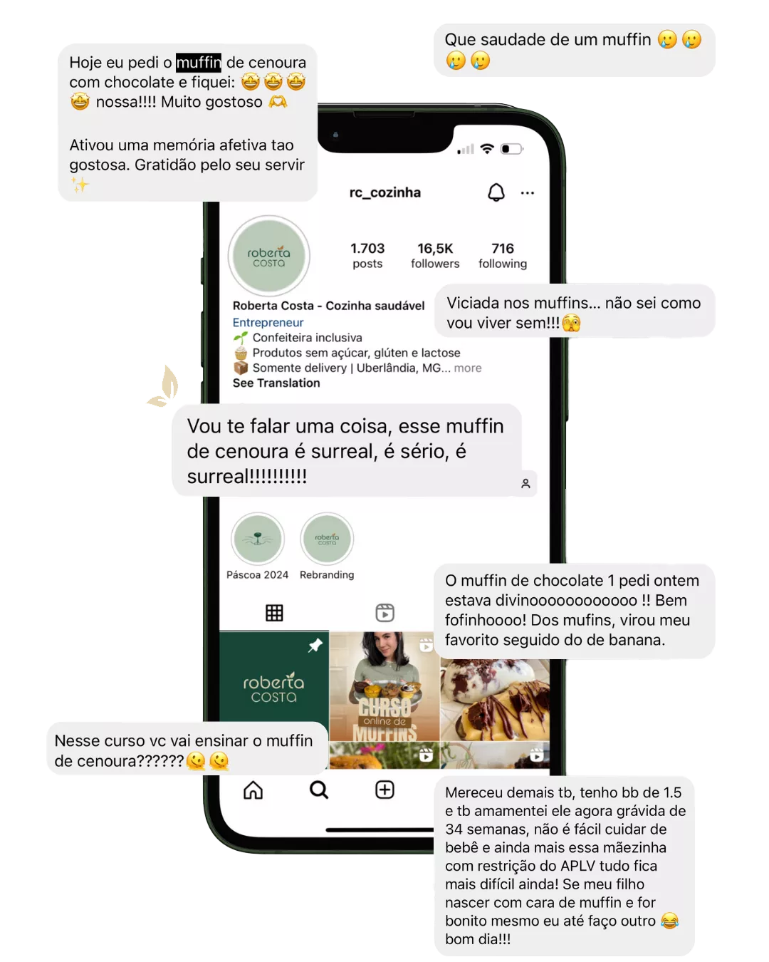 Em 6 anos de confeitaria saudável e inclusiva, os muffins são os campeões de venda da @rc_cozinha! Produzimos, em média, 840 muffins por semana, ou seja, 3.360 unidades por mês. Faturamento de aproximadamente R$ 28.000,00 por mês!